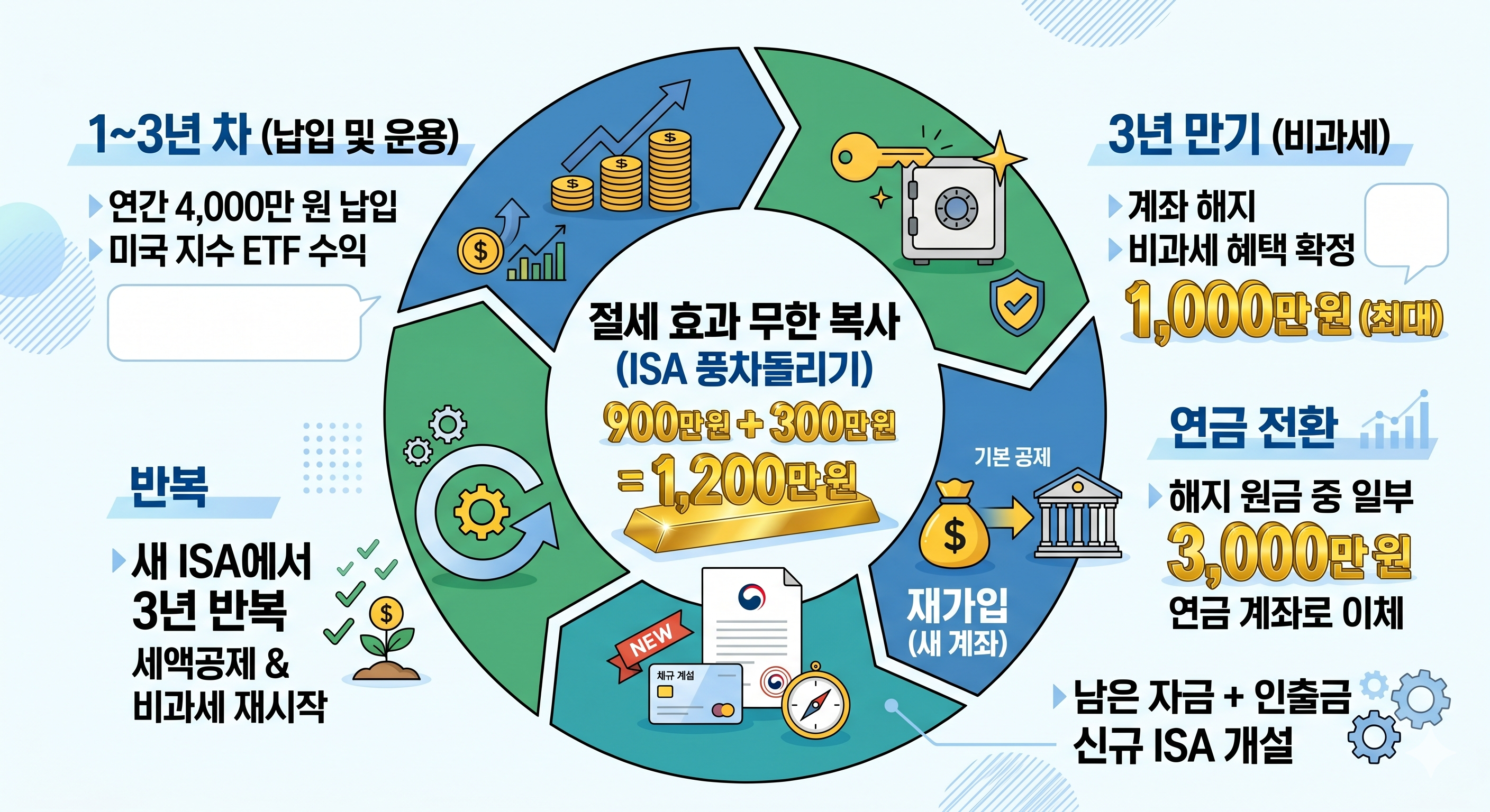 - 재가입: 남은 자금과 인출한 돈으로 신규 ISA를 즉시 개설합니다.
